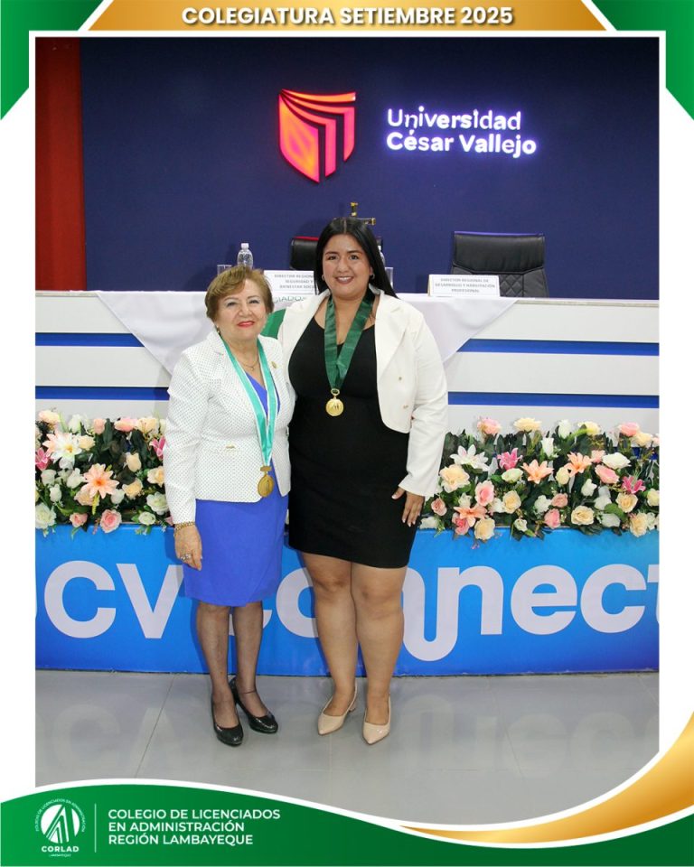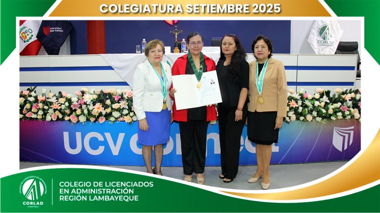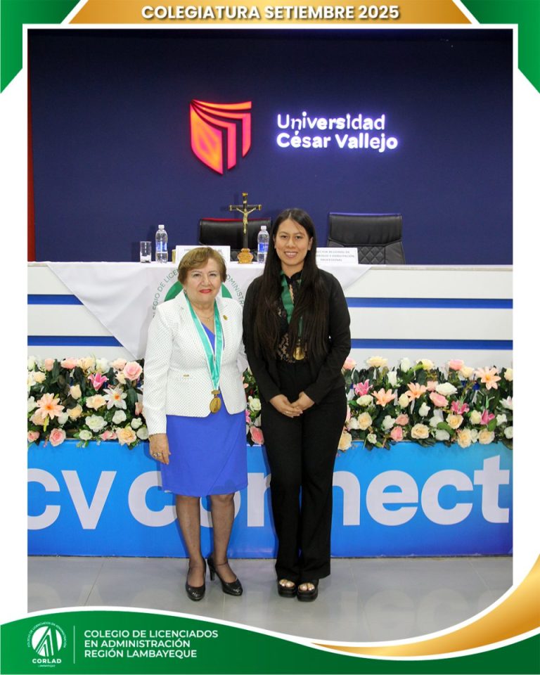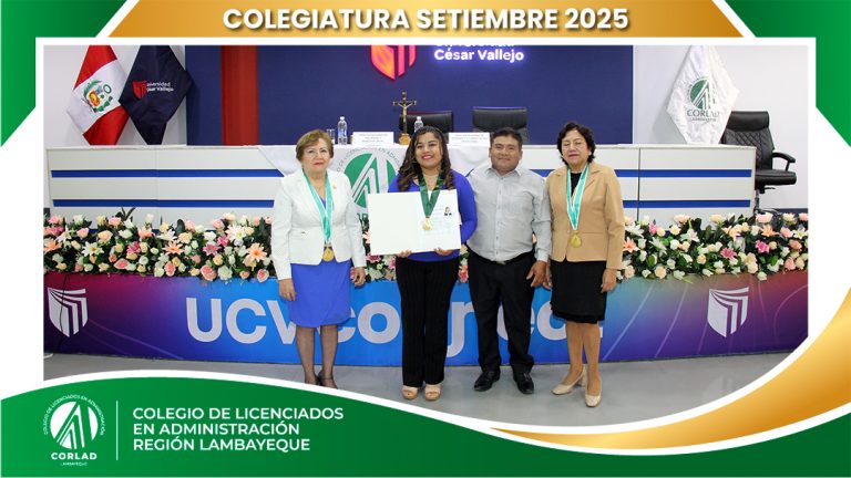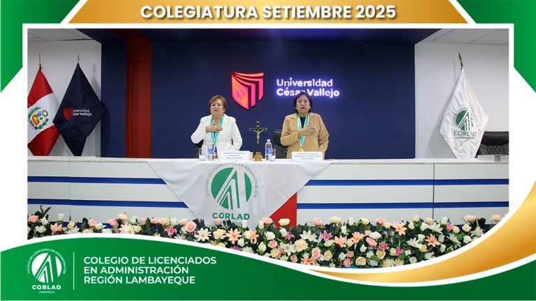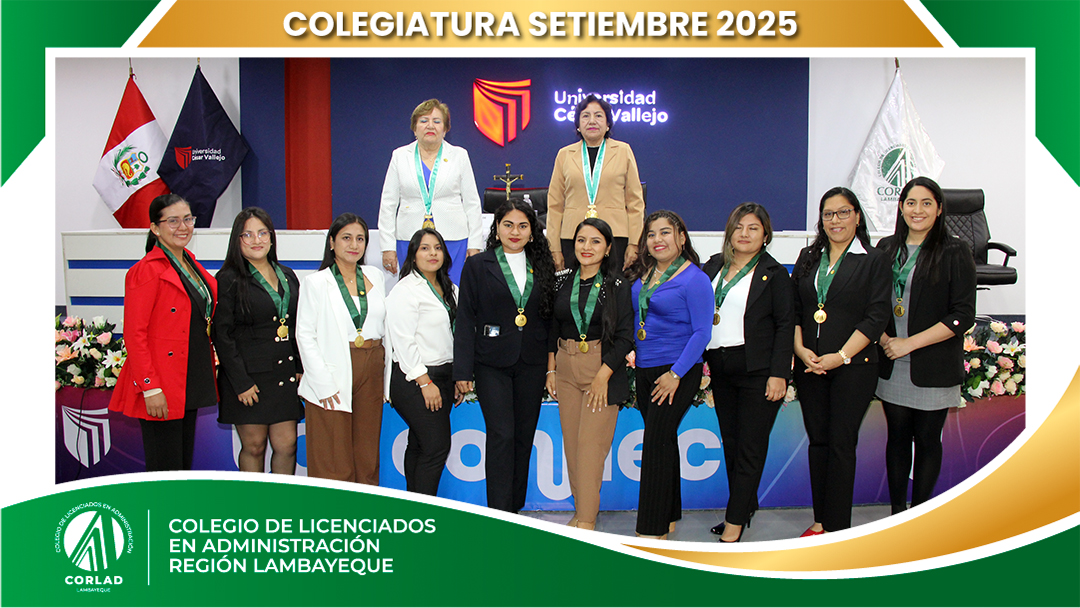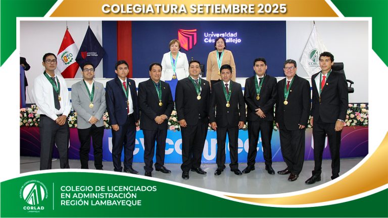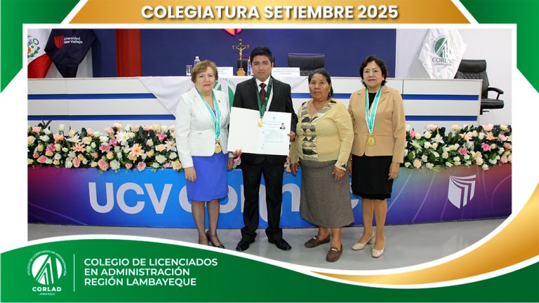El sábado 6 de setiembre de 2025, desde las 9:00 a. m., se realizó en las instalaciones de la Universidad César Vallejo (UCV) la ceremonia de colegiatura del Colegio de Licenciados en Administración – Región Lambayeque, acto solemne mediante el cual nuevos profesionales se incorporaron oficialmente a la orden, acompañados de sus familiares y autoridades institucionales.