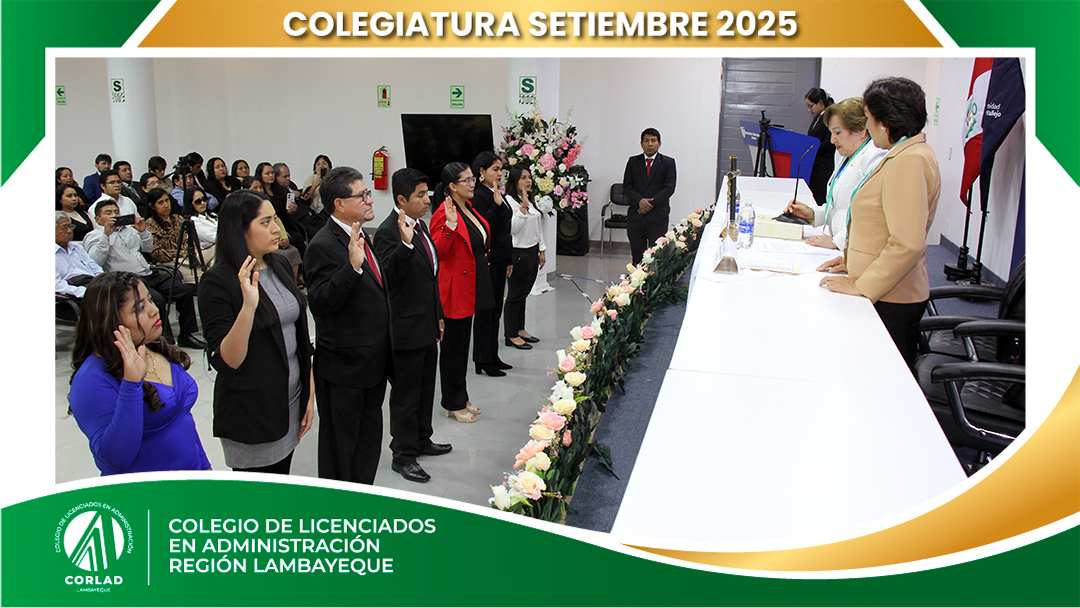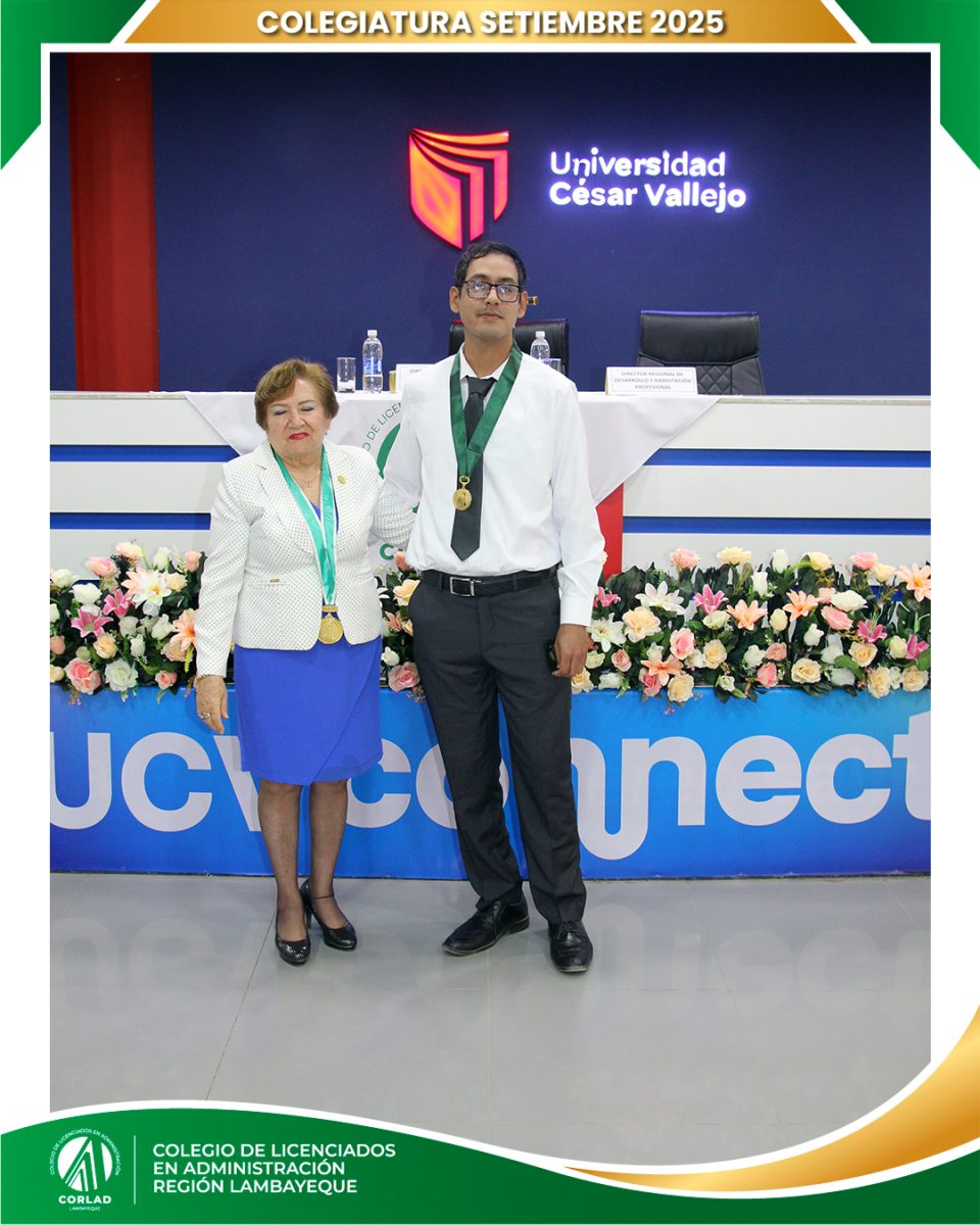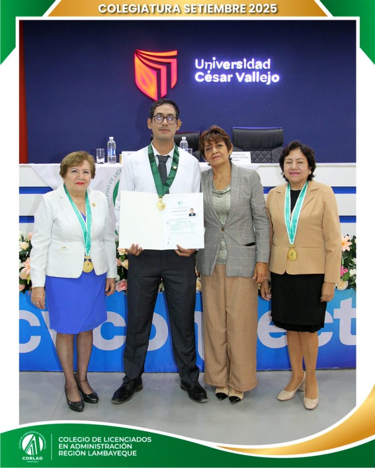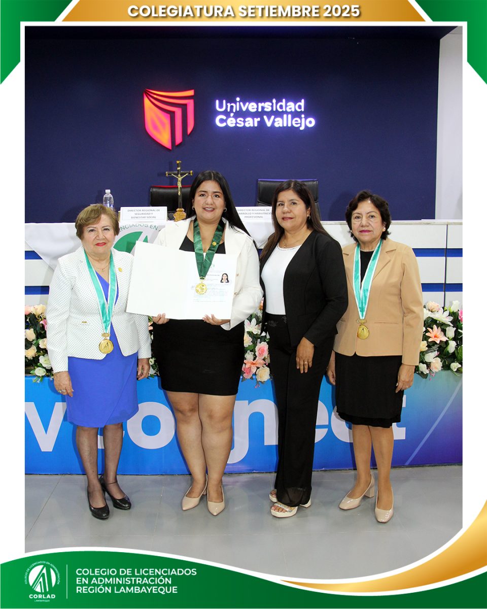 El sábado 6 de setiembre de 2025, desde las 9:00 a. m., se realizó en las instalaciones de la Universidad César Vallejo (UCV) la ceremonia de colegiatura del Colegio de Licenciados en Administración – Región Lambayeque, acto solemne mediante el cual nuevos profesionales se incorporaron oficialmente a la orden, acompañados de sus familiares y autoridades institucionales.